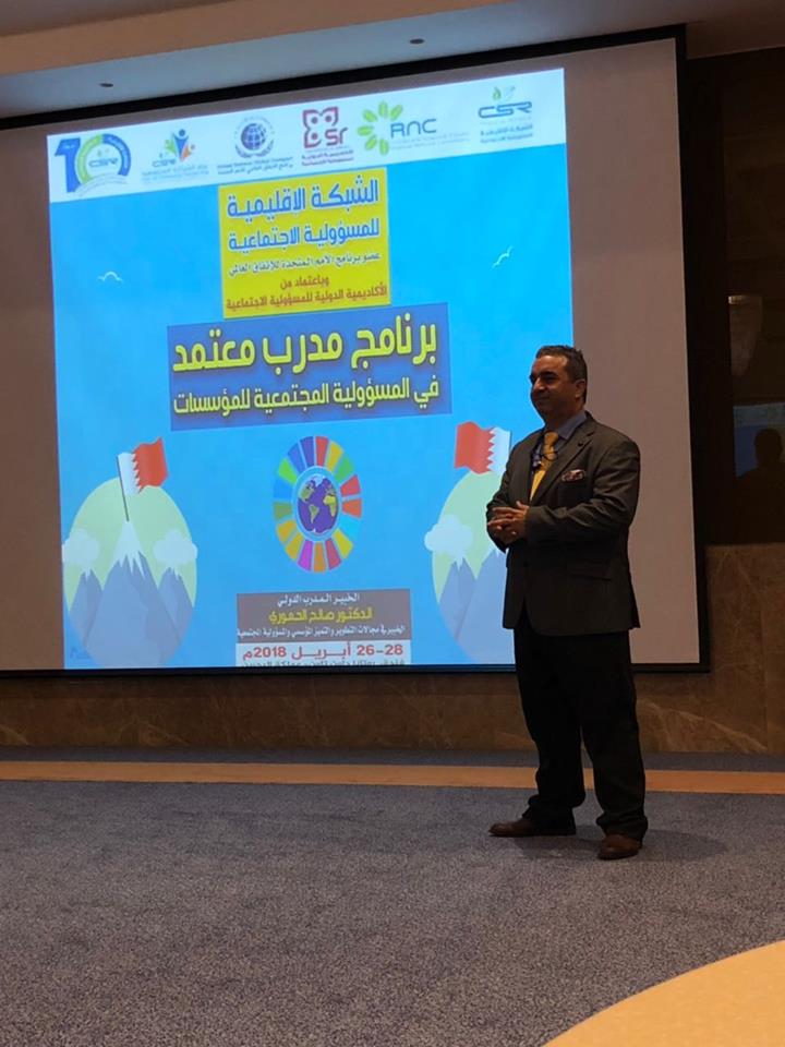 أعلنت الشبكة الاقليمية للمسؤولية الاجتماعية عن تعاقدها مجددا مع المدرب الدولي الدكتور صالح الحموري لتقديم ورشة ” مدرب معتمد في مجال المسؤولية المجتمعية للمؤسسات” وذلك بعد نجاح البرنامج في نسختيه السابقتين. حيث سيتم تنفيذ هذا البرنامج في كل من مملكة البحرين وجمهورية السودان بإذن الله.