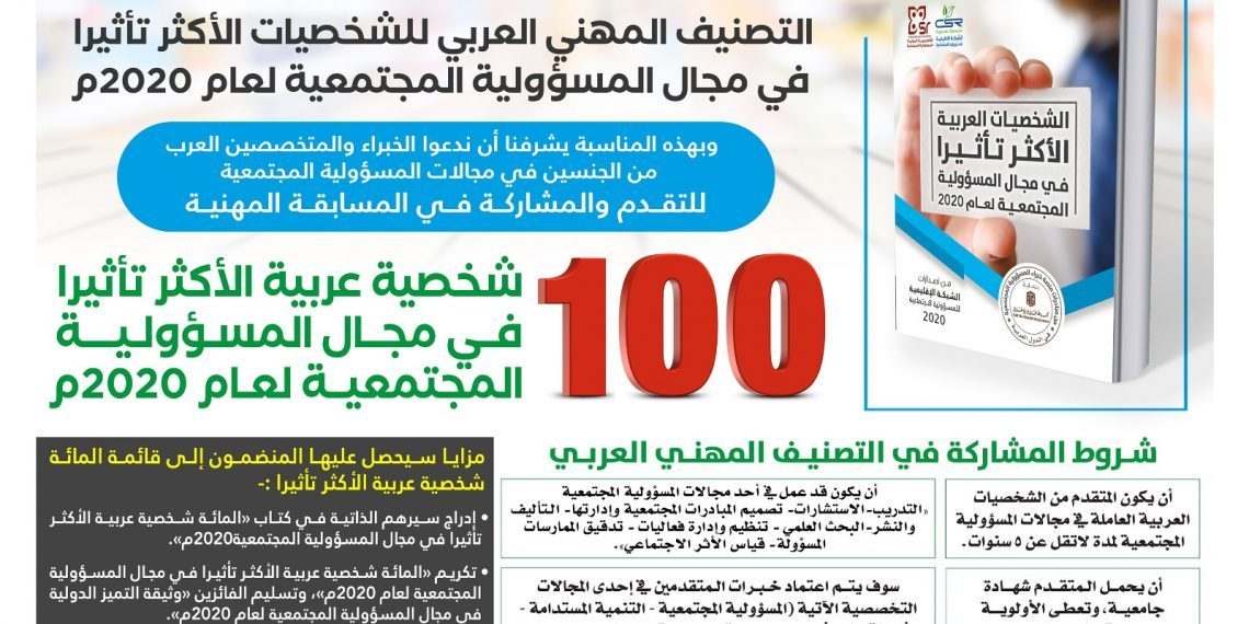 الاصدار الاول من التصنيف العربي للشخصيات الأكثر تأثيرا في مجال المسؤولية المجتمعية لعام 2020م “ تحميل اضغط هنا