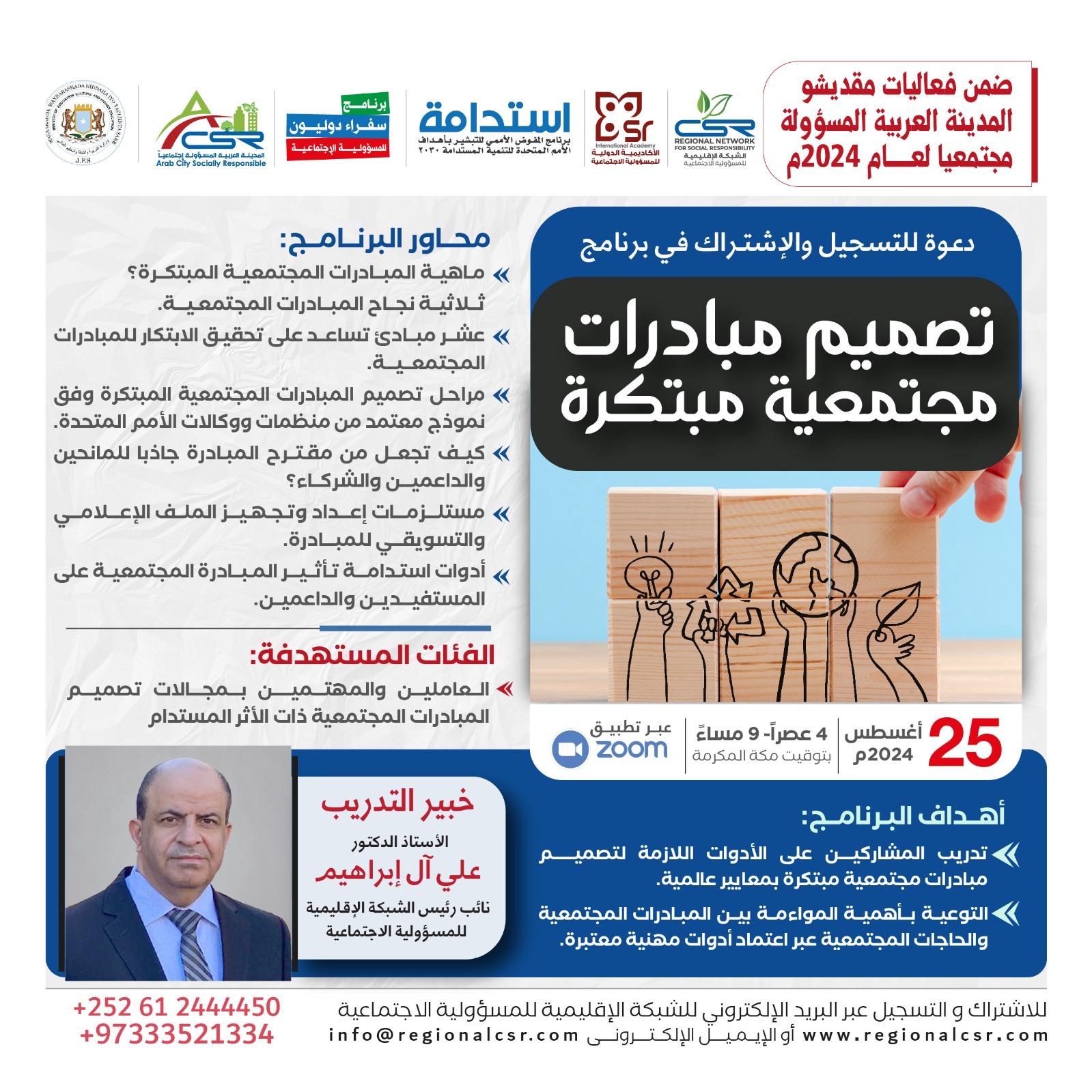 - تدريب المشاركين على الأدوات اللازمة لتصميم مبادرات مجتمعية مبتكرة بمعايير عالمية.