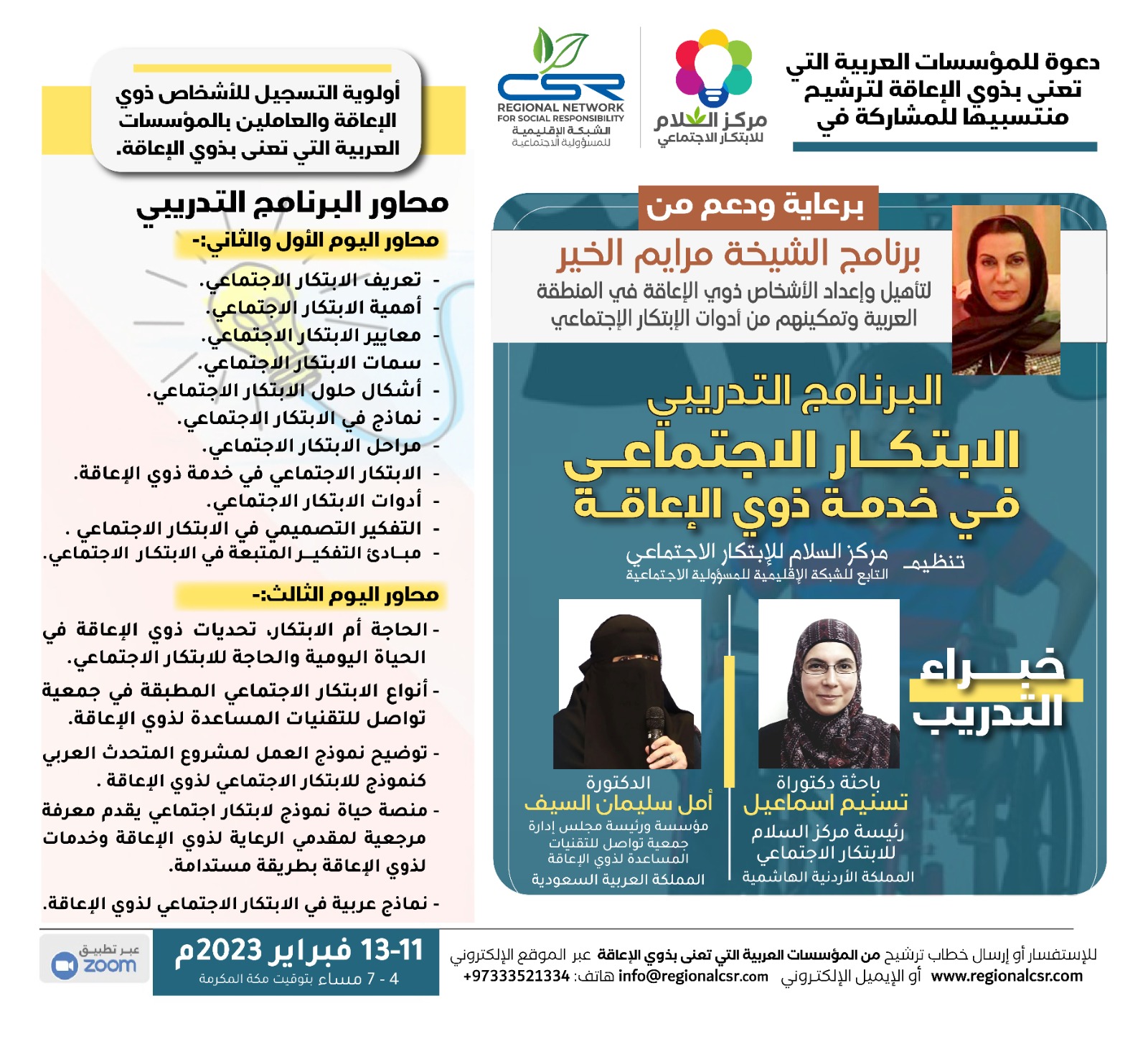لتأهيل وإعداد الأشخاص ذوي الإعاقة بالمنطقة العربية وتمكينهم من أدوات الإبتكار الاجتماعي